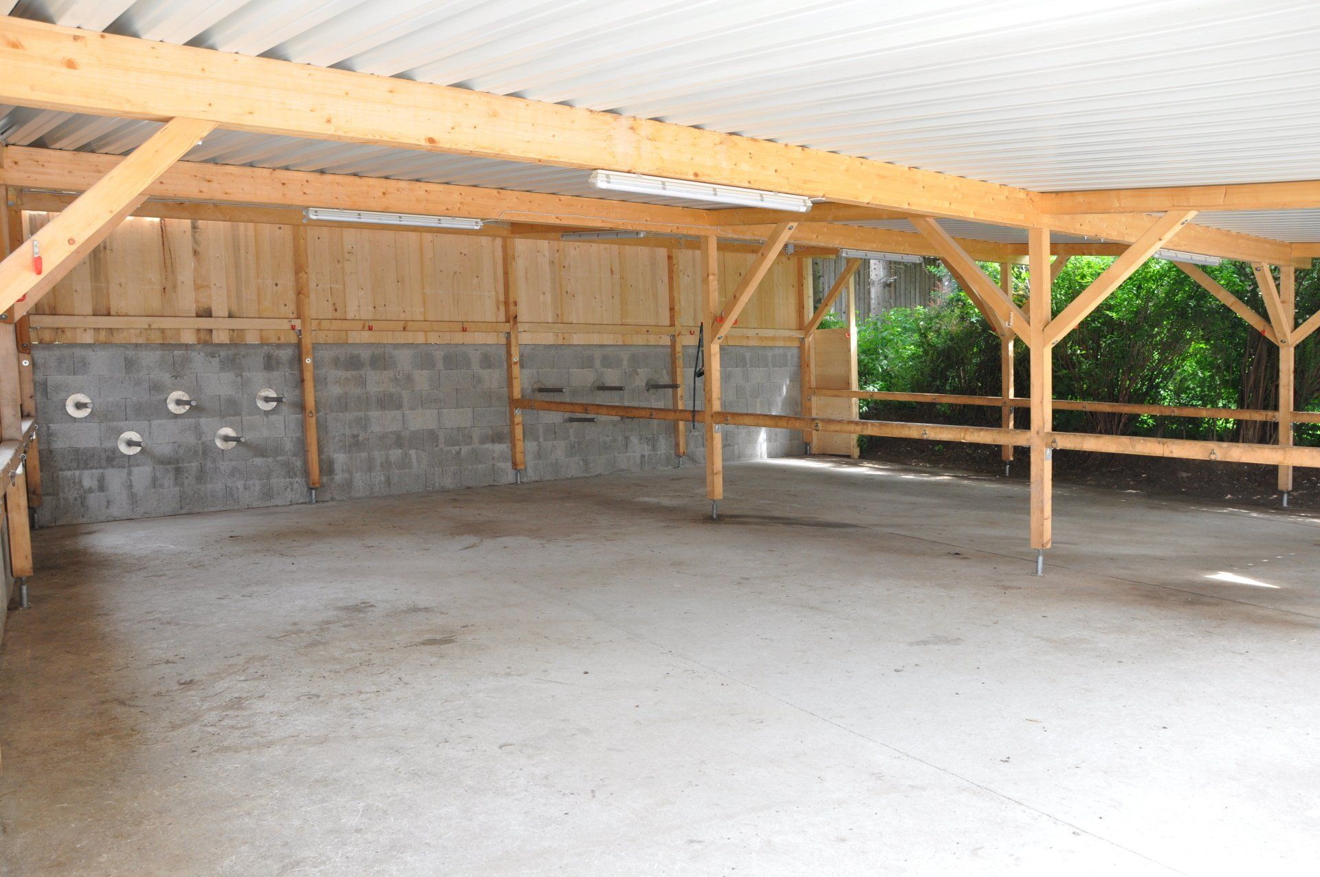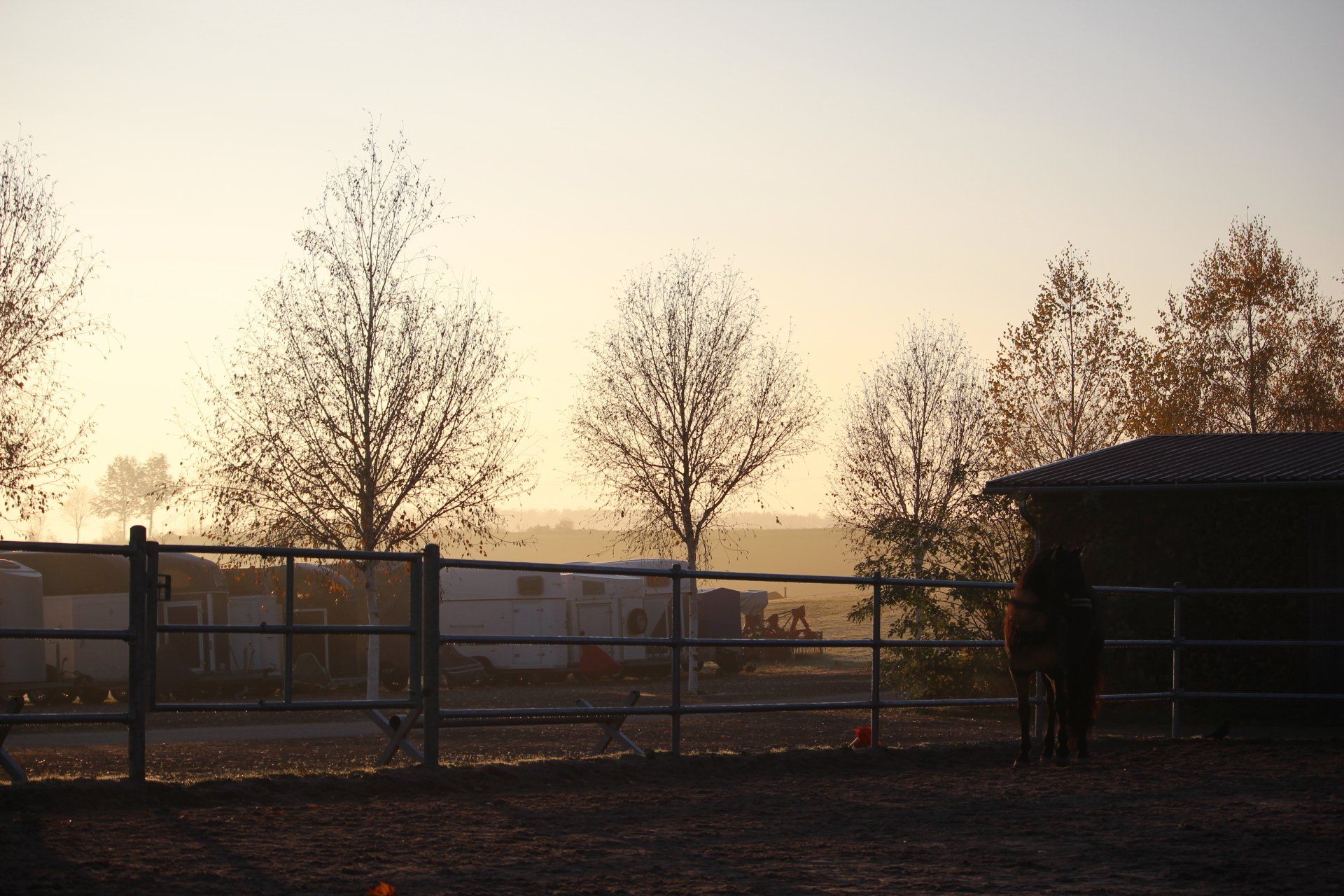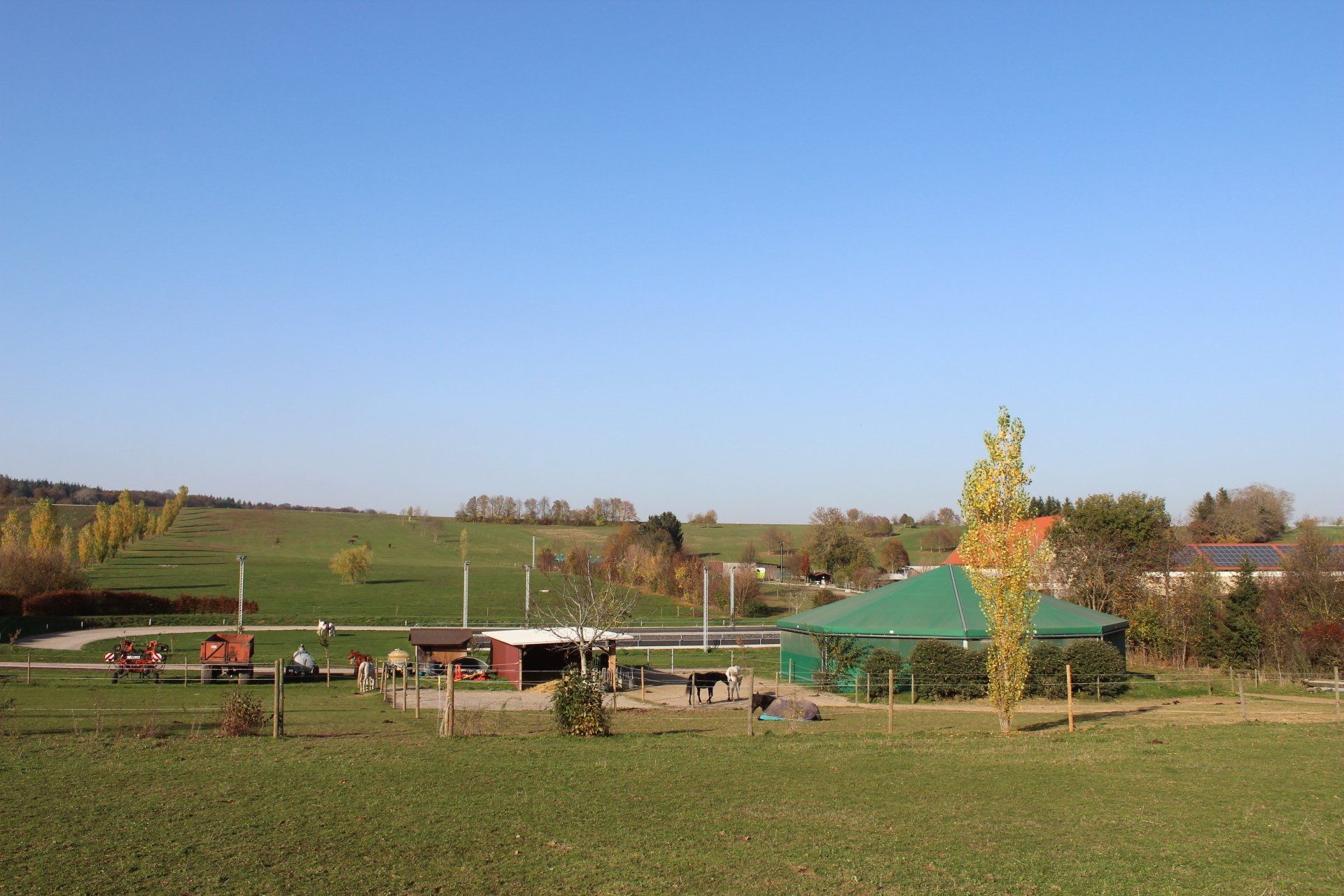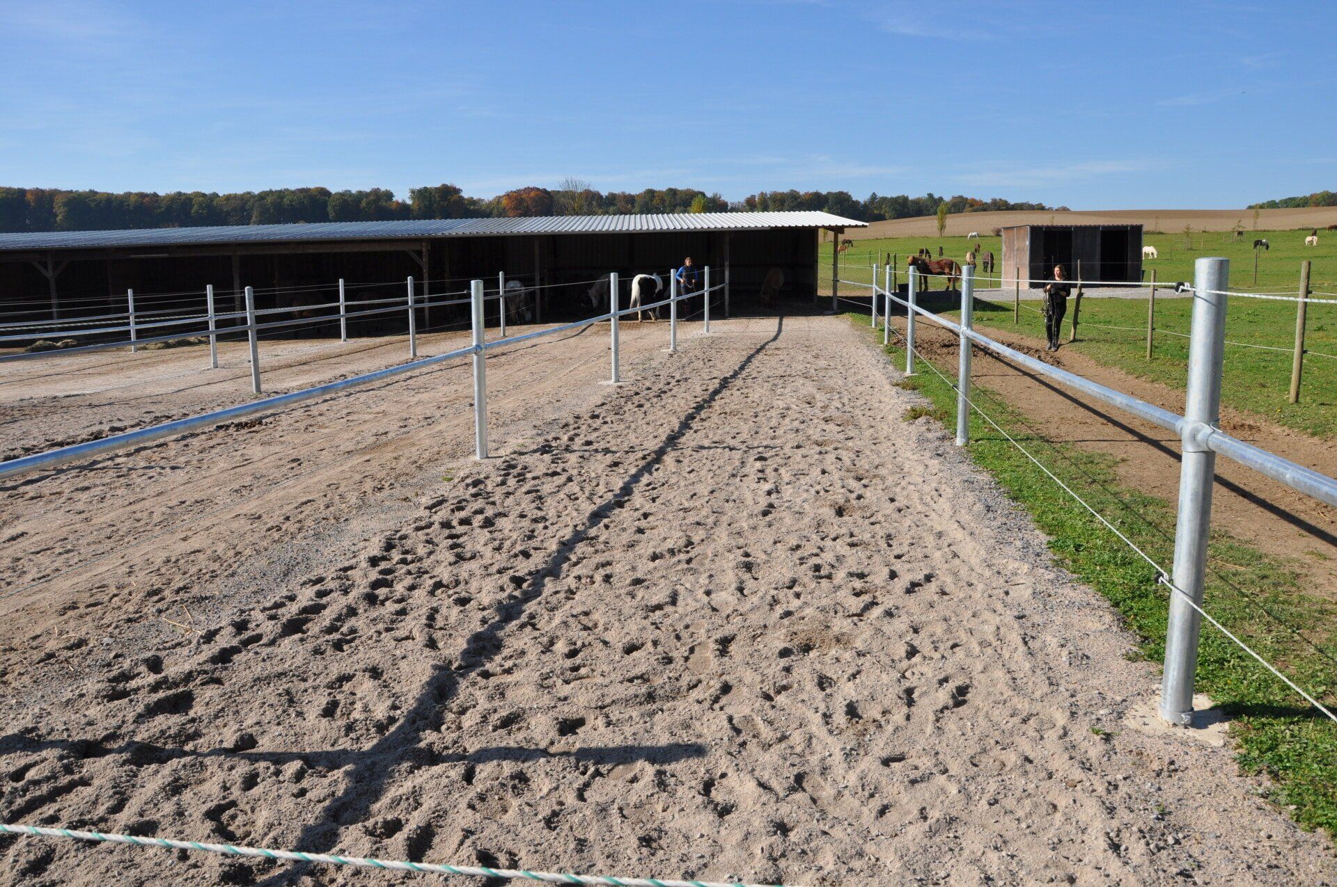 Der Dressurplatz 20 x 60 m mit Flutlichtbeleuchtung